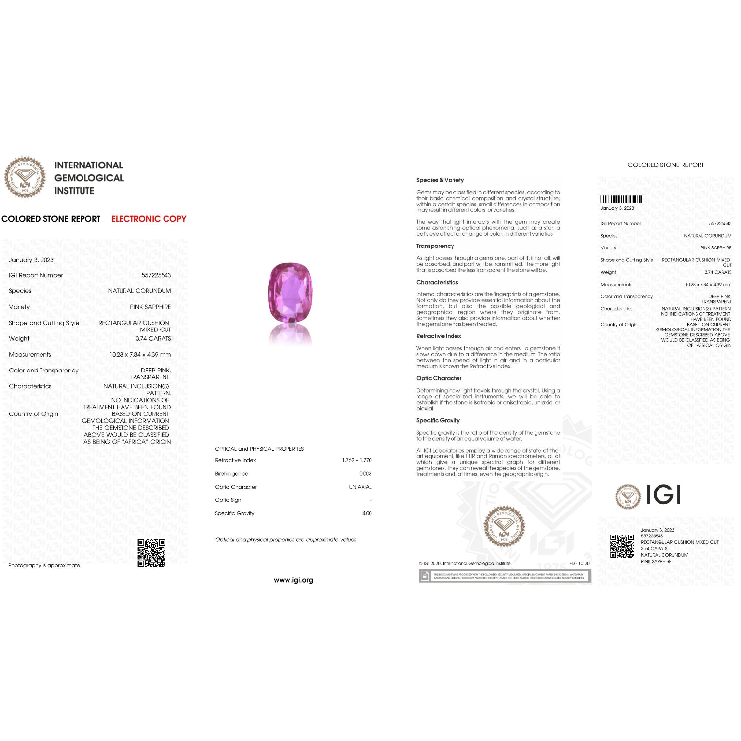 International Gemological Institute (IGI) Certified -