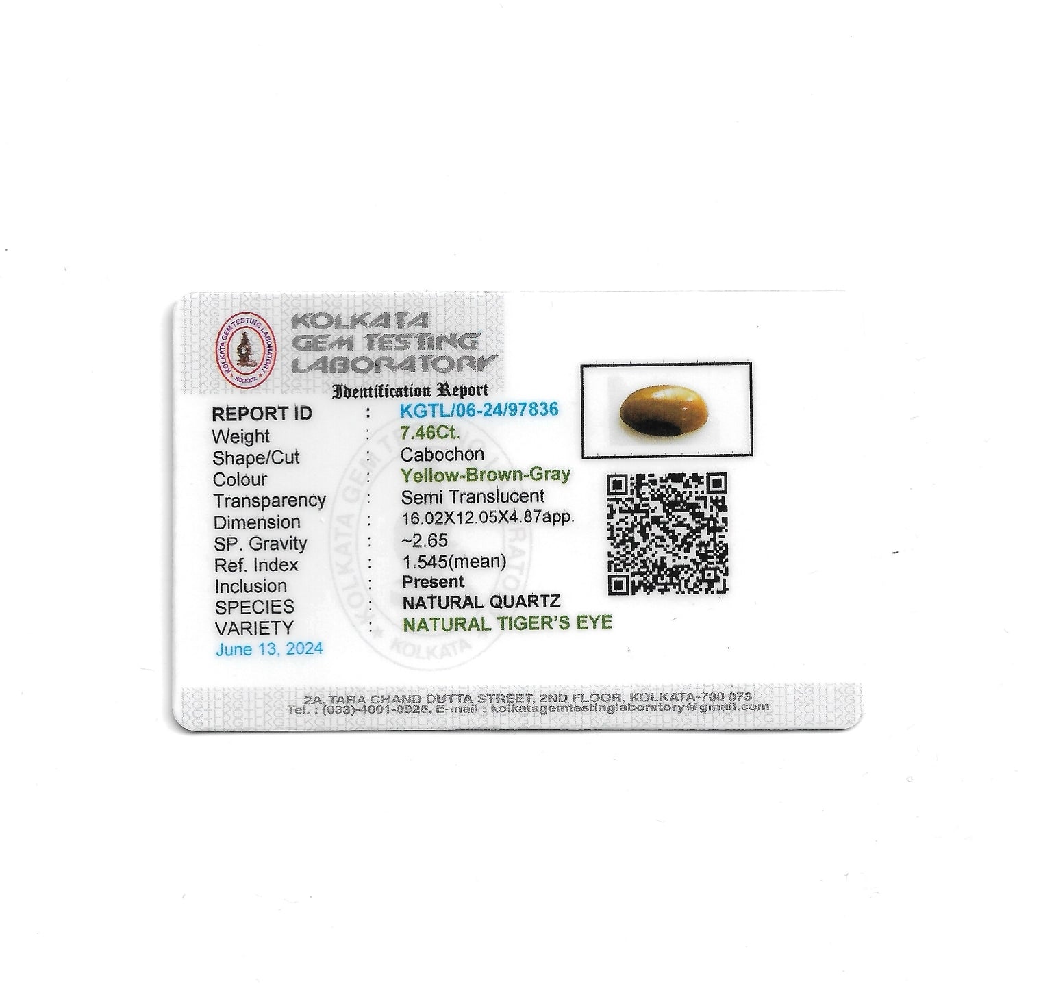 Our gemologists have carefully curated this 7.46-carat, Tiger Eye Stone for its exceptional color & overall quality.